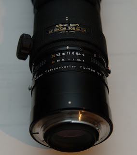 When i first got my hands on the teleconverter i have to say i was little confused. Firstly i had some minor problems figuring out how adjust D2X's "No cpu lens data" part. In the end it was pretty simple: knowing that the 300mm's minimum aperture is f4 and knowing that the teleconverter will double the light needed, i set minimum aperture on the "no cpu lens data" on f8. All in all this means in practice that when i manually set my 300mm's to marked minimum aperture of 4 , my camera will understand that actually it needs to double that for balanced shots. It continues to next step, when i manually set the aperture to f5.6, the camera understands to pick f11 instead and so on. This was actually me thinking too complicated again.